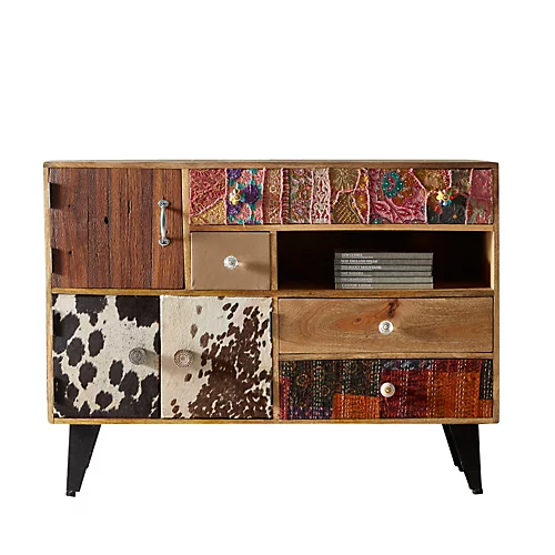 Artisan Limited Edition Large Sideboard has a creative, contemporary design and works well with transitional to modern homes. Hand crafted in India from 100% reclaimed wood and fronts of which have a varied range of finishes and handle styles is beautifully intricate and detailed that will suit a wide range of modern interior styles. Artisan Limited Edition Sideboard features four drawers and three cabinets for a variety of storage options. Add this sideboard to your living room, hall or entryway for extra storage and an attractive accent.