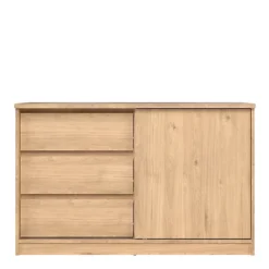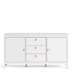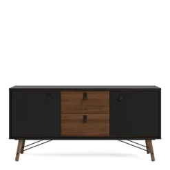A modern sideboard including plenty of storage in a striking design complete with brown leather tab handles, also available in contrasting matt black