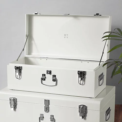 - MINIMALIST ELEGANCE: Add a touch of luxe to your home with the BTFY storage trunks, finished in a simple cream colourway with sleek silver detailing – a chic combo sure to sit pretty in your bedroom, living room or home office.