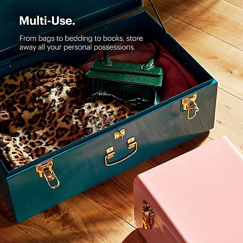 - POP OF COLOUR: Brighten up your home with the BTFY storage trunks, finished in a bold pink and teal colourway with elegant gold effect detailing – a chic combo sure to breathe life into your bedroom, living room or home office.