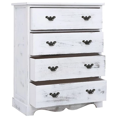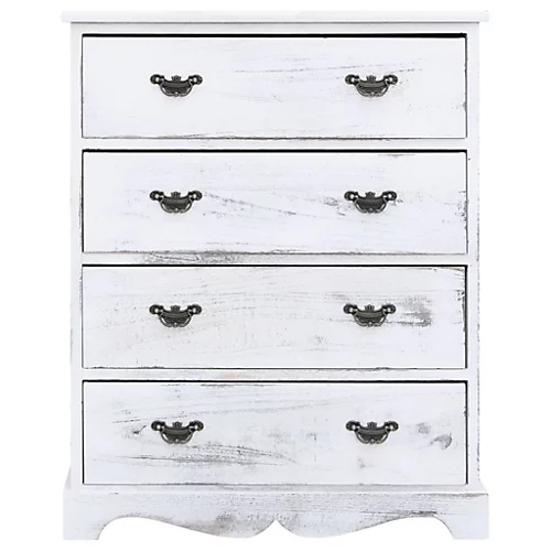 With its antique look and practical utility, this wooden drawer cabinet will become an ideal complement in your existing home! Made of quality paulownia, poplar wood and MDF board, this cabinet is exceedingly sturdy and durable. It consists of 4 drawers to provide ample storage space for your various items, such as keys, notepad, books, magazines or other knick-knacks and essentials. Upgrade your interior decor to the next level with our modern drawer cabinet!
