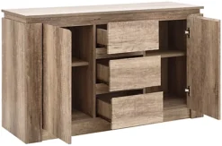 The wooden sideboard in industrial style is meant to be a timeless eye-catcher in your room. It is ideal for placing books, magazines, kitchenware, and other items with three layers of long shelves. This sideboard is made of solid mango wood, a hardwood with dense grains. It is combined with steel, making it very stable and durable, and stands wear and tear of time. The exquisite craftsmanship guarantees that every step of the process is carried out with the most excellent care. Important note: The colour and grains of the wood may vary from piece to piece, making each piece unique and slightly different from the next; the delivery is random.