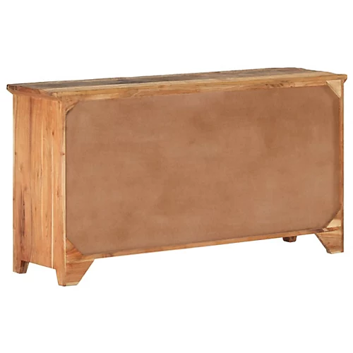 The wooden sideboard adds a vintage style to your existing living room decor. This side cabinet is made of solid reclaimed wood, making every piece of furniture unique and slightly different from the next. Reclaimed wood is solid, stable, durable, and beautiful. Signs of wear and visible grain structure give each piece its own history and a unique look. The solid acacia wood frame offers extra stability for the cupboard. It also features two doors and three drawers providing ample storage space to keep your item organised and within reach. Additionally, the sturdy top is ideal for displaying decorative objects such as photo frames, potted plants, vases, etc. Important note: Colours and grains may vary from piece to piece, making each piece unique. The delivery is random as well.