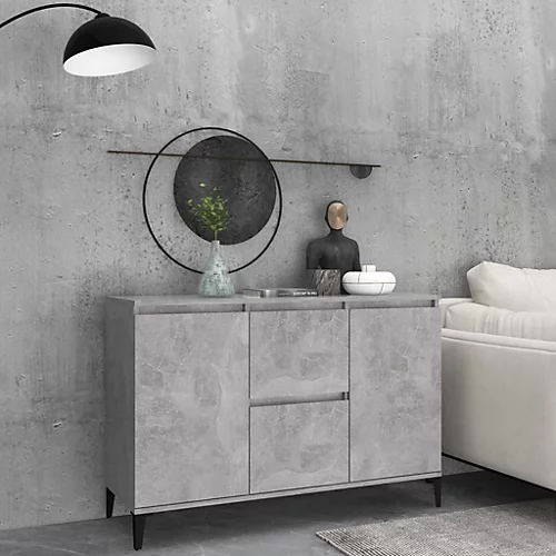 This sideboard brings an industrial charm to your living area. The side cabinet is sturdy and durable enough to ensure a long-lasting service. The metal legs ensure its extra stability. This book cabinet features 2 drawers and 2 doors, providing ample storage space for your items. You can also place decorative objects and photo frames on the sturdy top. Additionally, the storage cabinet is easy to clean with a damp cloth.