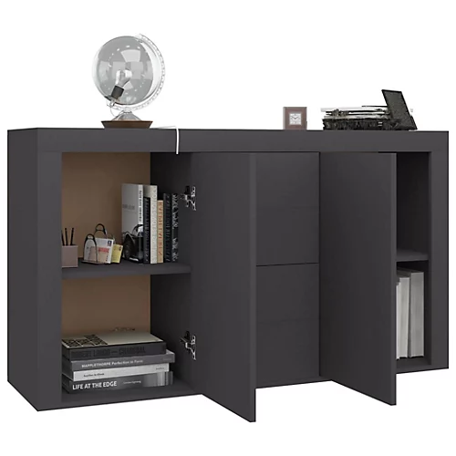 The sideboard is meant to become an ideal complement in your room with its practical utility. This side cabinet with 2 doors and 4 drawers provides ample storage space for books, multimedia appliances and other items. The sturdy tabletop is perfect for displaying decorative objects, photo frames or potted plants. This sideboard is built to last with its premium engineered wood material. The drawer cabinet is easy to clean with a damp cloth. This storage cabinet is also easy to assemble.