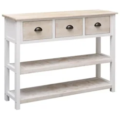 This eye-catching wooden sideboard will make a great addition to your room decor. Solid paulownia wood: Solid paulownia wood is a beautiful natural material. Paulownia wood is highly resistant to bugs and rotting.Ample storage space: The sideboard cabinet has 3 drawers and 2 shelves, providing ample storage space for keeping your various items neatly organised.Sturdy top: Its sturdy top is ideal for placing decorative items such as vases or potted plants. Warning:In order to prevent overturning, this product must be used with the wall attachment device provided.