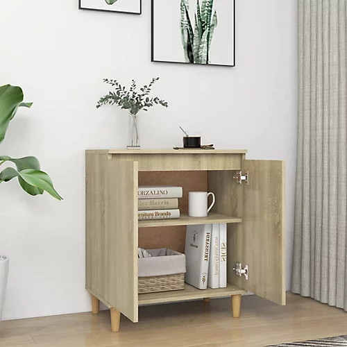 Upgrade your interior to the next level with this well-designed and chic sideboard, featuring a Scandinavian charm. This book cabinet with four wood legs is stable and sturdy. The side cabinet features 2 compartments inside the doors, providing ample storage space for storing knick-knacks and keeping your magazines, books, DVDs and multimedia devices well organised. The tabletop is ideal for displaying decorative objects, photo frames or potted plants. Additionally, the storage cabinet is easy to clean with a damp cloth.