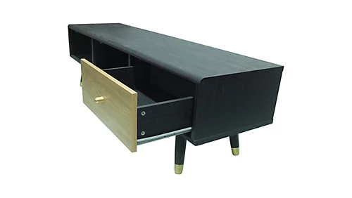 - This stunning black and oak TV Unit would be the perfect addition to any living space, with a width of 140cm, this stand can accommodate for TVs up to 55”. Additionally, with three different storage areas and cable management features, this TV unit offers more than just a home for a big screen, but also will be the practical addition to the home.