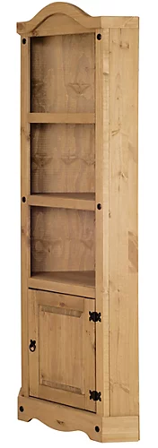 Carrying the trademark Corona Pine range features, the Corona Corner Display Unit boasts three display spaces and a cupboard offering space saving storage for a traditional setting. This corner display unit will carry off the country style living or dining room brilliantly if positioned in the corner of the room. Crafted from solid pine and finished with a natural wax.