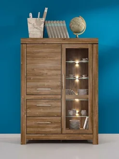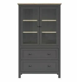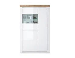 Tall Glass Display Cabinet Unit LED Light Modern White Gloss Black Brown Insert Azteca – White Gloss