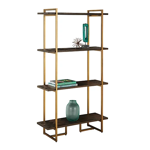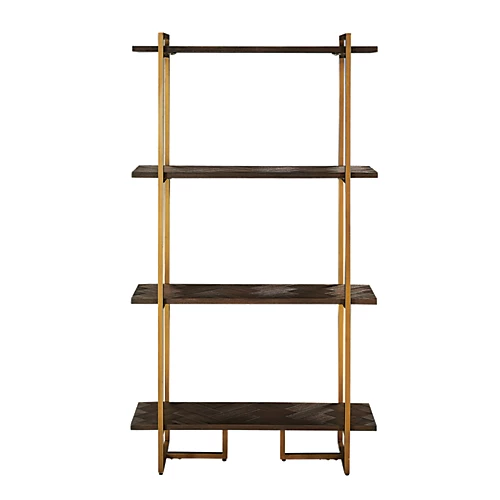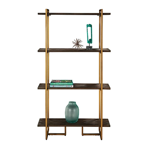 - This 4 tiered etagere bookcase, with subtle herringbone detail and a trendy brass metal frame, will be a classic addition to any living space.