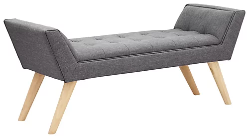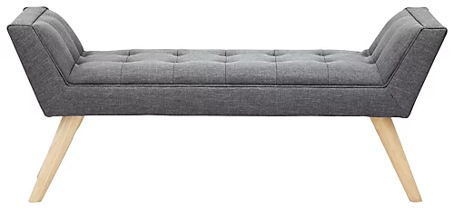 A smart upholstered bench is a neat addition to any room, providing a handy extra seat for guests or offering a vantage point for a great view when positioned in a window recess. Milan epitomises Scandi charm. Textured hopsack fabric conceals deep-cushioned seating and emphasises the benchs crisp profile. The elegant retro-style legs are made from solid polished wood and contrast beautifully with the fabric. Easy to assemble, this lovely mid-century-inspired furnishing piece is versatile enough to grace any home.