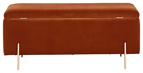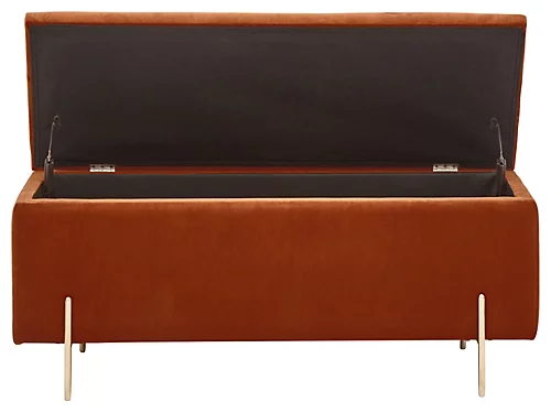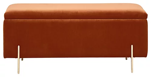 Every bedroom needs a storage box and Mystica is the perfect choice. The simple design makes it a good match for most interiors – pick from a selection of in-vogue colourways to suit your style. The ottoman has a hinged lid and features a generous lined compartment that’s ideal for extra bedding and cushions. Both frame and seat are upholstered in a tactile plush fabric with a matt velvet pile that looks and feels indulgent. The simple gold-effect metal legs add to the minimalist look and feel.