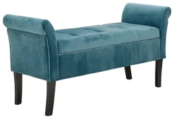 Create an elegant counterpoint to any room with this smart yet practical window seat. The softly padded frame incorporates a pair of rolled arms at either end, supported on sweeping solid wood legs. Upholstered in a gorgeous plush fabric with velvet pile, Osborne is available in a choice of on-trend colours that complement period and contemporary interiors. The seat base lifts to reveal a generous storage compartment beneath – perfect for storing blankets and throws, or your latest bestseller!