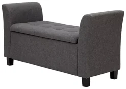 The Verona upholstered window seat offers a stunning, elegant design. Featuring deep buttoned detailing on the lift-up lid, this window seat is available in a stylish textured grey hopsack fabric. Ideal for those looking for a comfortable seating area where space may be limited. Crafted to an exceptionally high standard this window seat comes complete with wooden feet. The seating area of the Verona window seat lifts up to reveal a spacious storage area that will help you to reduce the clutter in your home.