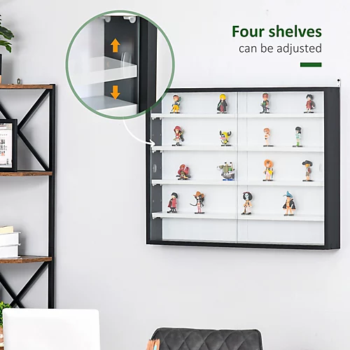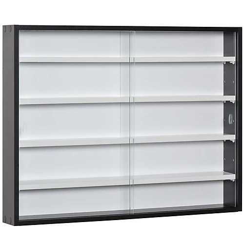 - It’s time to get your ornaments displayed and organised – look no further than this wall cabinet from HOMCOM. Its five-tier design means there is plenty of room for keeping everything you want safely on show, with each shelf being able to adjust to suit what you need to hold. The structure is crafted from particle board, so it is tough and durable, and the front is fitted with two moving glass doors, keeping everything protected and easy to access when wanted. Easy to put in place, this classic home furnishing will keep all your favourite pieces beautifully displayed.