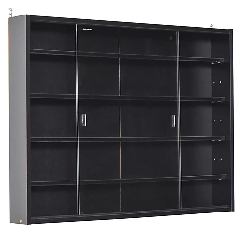 • Saves space in your home/office, without taking up any floor space. • Features adjustable shelves, providing room for both small and large objects. • Two large glass doors, keeps the inside protected and slides open for easy access. • Tough and sturdy particle board frame, attaches to the wall easily. • Assembly required