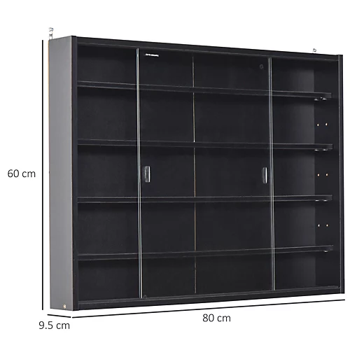- It’s time to get your ornaments displayed and organised – look no further than this wall cabinet from HOMCOM. Its five-tier design means there is plenty of room for keeping everything you want safely on show, with each shelf being able to adjust to suit what you need to hold. The structure is crafted from particle board, so it is tough and durable, and the front is fitted with two moving glass doors, keeping everything protected and easy to access when wanted. Easy to put in place, this classic home furnishing will keep all your favourite pieces beautifully displayed.