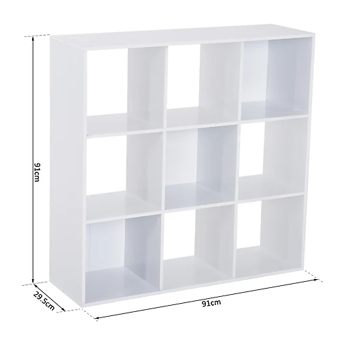 HOMCOM offers a new easy way to organise and secure your belongings with this storage cabinet. Featuring 9 compartments, eco-friendly durable board construction with double sided pasters. The anti-tilt steel wall mounting is used to provided increased stability. Create a neat space for your books, toys, bags, knick-knacks, clothes and more.