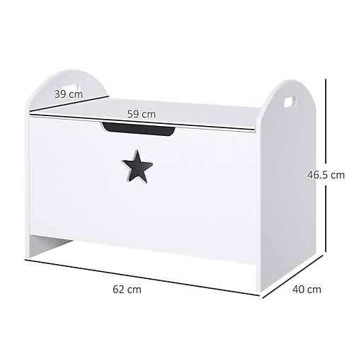 Made from MDF and crafted into a spacious 46.5 x 62cm design, this fresh white storage box is the perfect addition to your child’s room to store all their toys, books and odd bits and bobs. Sturdy in construction to suit children of all ages, it features a handle-style groove and safety hinge to lift the lid up easily and keep it in place, two handles for easy carrying and an elevated base for extra protection to the box. Finished with a cut-out star on the front for extra character.