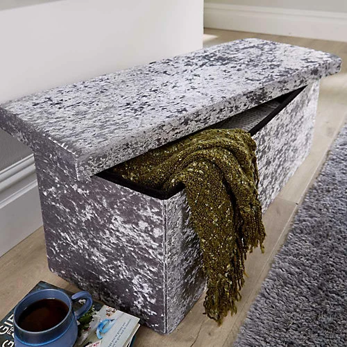 Blending boudoir style with functionality, this ottoman is a practical but attractive addition to any home. Finished in a stunning velvet fabric, the detailing stands out and gives a fashionable vibe.