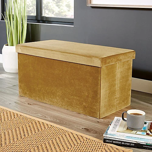 Home Source Flat Velvet Folding Storage Ottoman Mustard Yellow