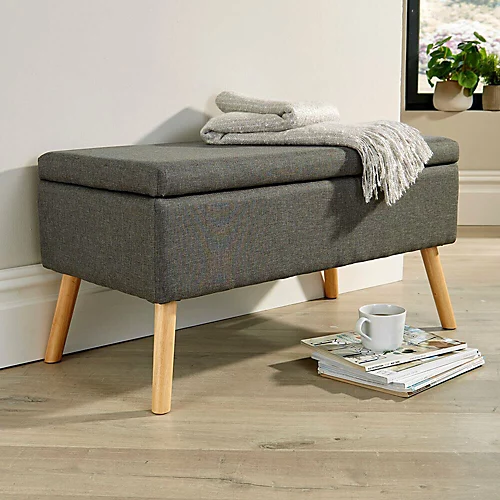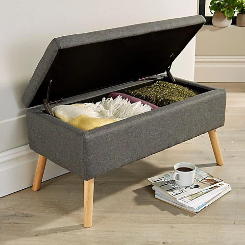 The large George Storage Ottoman is a fantastic addition to any home. Featured in hopsack dark or light grey, this ottoman is generously sized with four wooden legs. With a simple but chic open and close lid, the area inside the George Storage Ottoman is perfect for when you want your living space to be tidy.