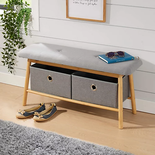 The grey oatmeal deep buttoned upholstered top provides a comfortable seat for when putting on footwear or just having a break.