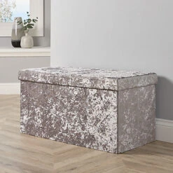 Part of our Sofia Folding Ottoman Storage Collection, our Crushed Ice Velvet covered Sofia Rectangular Ottoman is the epitome of sumptuous luxury. Available in Grey Ice Velvet. Also available in Silver Ice Velvet, Black or Brown Faux Leather, Grey or Blush Flat Velvet, Light Grey or Beige Linen.