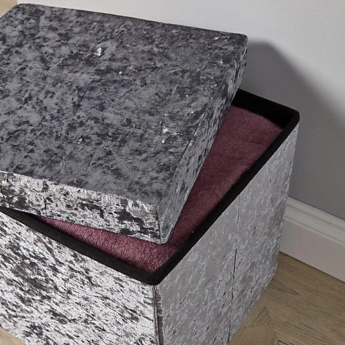 Home Source Sofia Crushed Velvet Square Folding Storage Ottoman Ice Grey