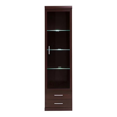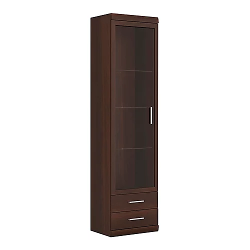 Tall Glazed 1 Door 2 Drawer Narrow Cabinet in Dark Mahogany Melamine. This beautiful classic collection offer an elegant and practical room layout. Limited space is no longer a problem as the range offers great storage options. The range is manufactured in dark mahogany melamine with laminated board (resistant to damage and scratching, moisture and high temperatures).