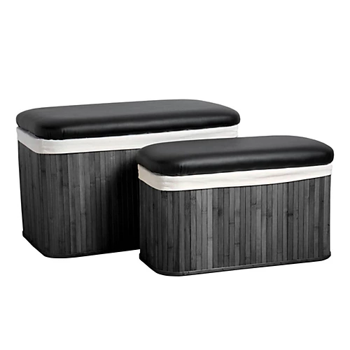Keep your room clutter free with the traditional bamboo rectangular laundry set. Ideal for organising and storing your laundry, the set of two bins, one large, one small means you can delegate your array of clothing and bed linen to a particular hamper. Made from bamboo ensures a sturdy build, the padded canvas lids are strong and comfortable enough to be used as seats. Each basket has a removable fabric which will help with carrying laundry. The black finish gives the traditional bamboo a contemporary twist.