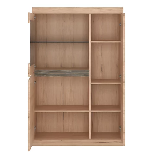 3 Door Glazed Cabinet.This fantastic grained oak finish with the contrasting dark trim makes this modern top quality collection of living room furniture the ideal destination for the most modern or traditional homes.
