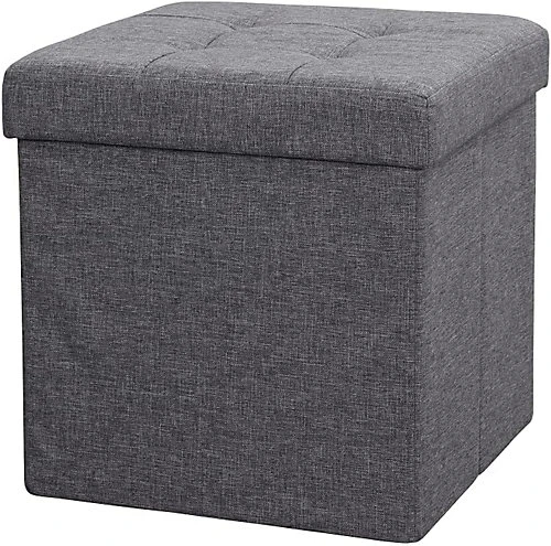Large Ottoman Foldaway Storage Blanket Toy Box Bench Twill Linen With Buttons 38x38cm Grey