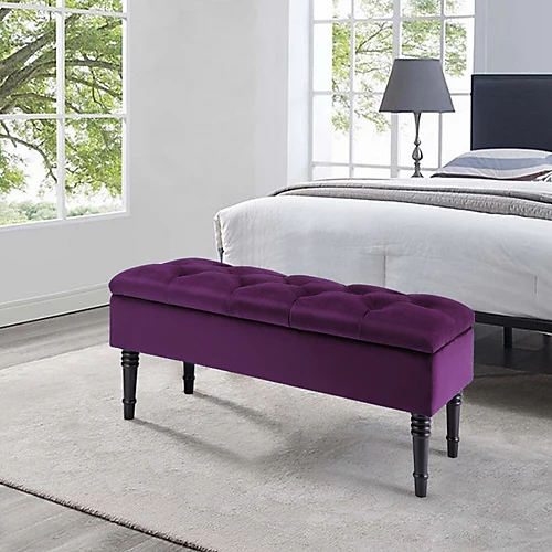 Livingandhome Dark Purple Velvet Ottoman Bench With Rubberwood Legs