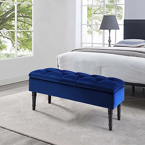 The storage ottoman lifts easily up to reveal storage space, which is ideal for clothing, bed linen, and other household objects. With a storage compartment, this bench helps you keep your room tidy and organized by neatly storing stuff. The hinged lid is designed for easy and safe opening and closing. The wide seat is made for more than one person.