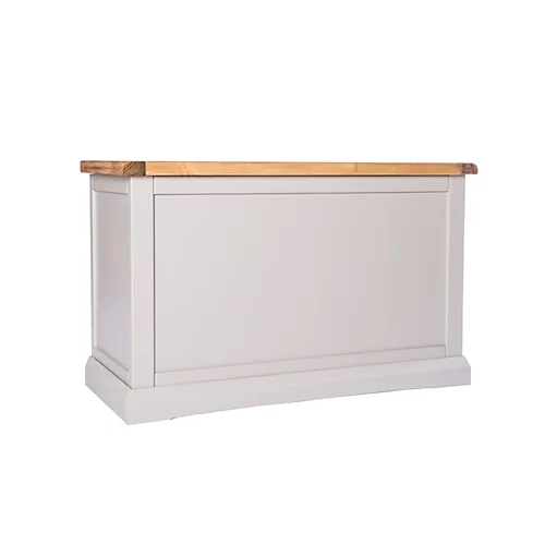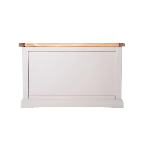 Our Loreo collection has a simple but pleasing design and is produced by our skilled craftsmen to the highest standards using responsibly sourced wood and veneers. All tops are made using a combination of solid pine wood and veneers and are carefully hand waxed giving it a great look. The body is finished with a high quality eco friendly water base paint on an light grey colour. This ottoman is the perfect item to fit in small areas, but still offers plenty of storage space for all your essentials. It comes with a safety holder to avoid accidents and it is made with a solid wood frame and veneer panels, making it very strong and stable, guaranteeing it will last for a long time. The top has a 3cm thick solid wood frame, making it extremely sturdy. The two drawers below are deeper and ideal for storing underwear or accessories. These attributes combined with a simple construction for easy assembly makes it a great value product to be taken home today.