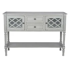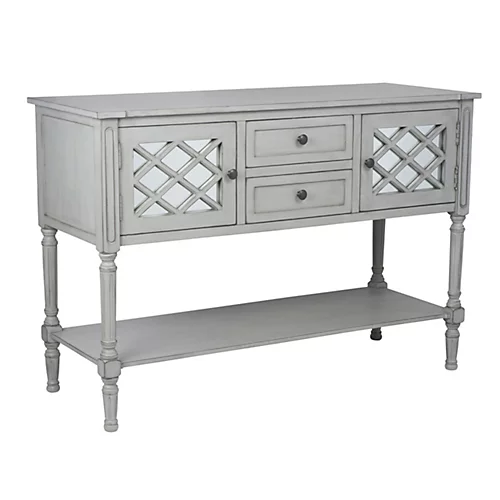 Add a touch of elegance to your home with this smart dresser. Crafted from soft pine wood and feature pretty mirrored drawers, which have a delicate wood pattern overlay. The two regular drawers are neatly positioned in the middle and accompanied by a useful bottom shelf. A design that will stand the test of time and become a staple of your home for years to come.