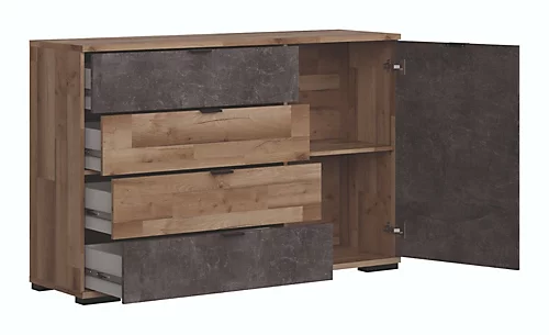The Arica range offers a sideboard / chest of drawers with four wide drawers and one door with a shelf behind.