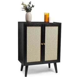 - ART DECO INSPIRED – Combining bohemian rattan and sleek black wood, this sideboard adds an Art Deco touch to your space.