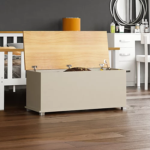 The Arlington Storage Ottoman in Grey is a versatile and practical piece of furniture that combines style, comfort, and functionality. With its sleek design and spacious storage compartment, this ottoman is the perfect addition to any living room, bedroom, or guest room. This ottoman features a spacious storage compartment beneath the hinged lid. Lift the lid, and you’ll reveal a generous space to store items such as blankets, pillows, books, toys, or any other belongings you want to keep organized and out of sight. The storage compartment helps declutter your living space, providing a convenient solution for keeping your essentials within easy reach. Although not upholstered or padded, the flat top of the ottoman can still serve as a functional surface. It can be used as a coffee table, a place to display decorative items, or as additional seating when needed. The Arlington Storage Ottoman is designed to be versatile and space-saving. Its compact size makes it suitable for various rooms, including living rooms, bedrooms, guest rooms, or even offices. It can be positioned as a standalone piece or paired with other furniture to create a cohesive look. In summary, the Arlington Storage Ottoman in Grey is a chipboard-based storage solution that offers a sleek design and a spacious compartment to keep your belongings organized. Its contemporary style and practicality make it a suitable choice for anyone seeking a functional and space-saving furniture piece. Upgrade your living space with this versatile ottoman and enjoy the convenience it brings to your daily life.