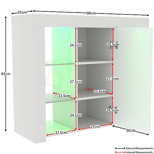 - Modern Design: The Azura 1 Door LED Large Sideboard boasts a modern and stylish design, making it a visually striking addition to any room. The matte body and contrasting gloss finish door create an elegant aesthetic that enhances the overall decor.