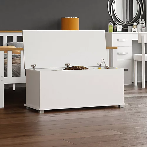 Vida Designs Leon Storage Ottoman White Storage Bench Chest Bedroom Living Room