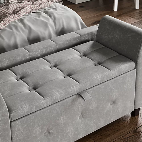 The Seville Storage Ottoman combines sleek and modern design with practicality. It features a spacious storage compartment, ideal for storing blankets, pillows, books, or toys. The ottoman comes in a stunning Crushed Velvet Silver colour and has dimensions of approximately H 60 x W 120 x D 45 Cm. Whether it’s for the living room, bedroom, or any other space, this ottoman is perfect for those seeking to add both style and functionality to their home.