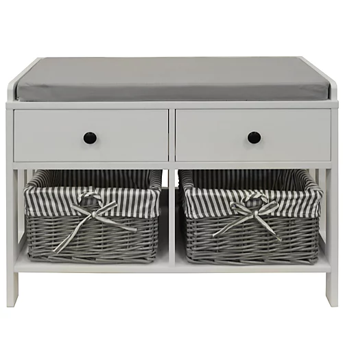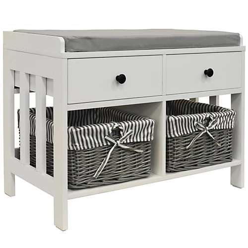 Storage Shoe Storage Bench with Two Drawers and Baskets White Grey