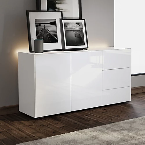 Modern, stylish, and SMART. This contemporary spacious sideboard is not only sleek but intelligent too. The perfect high-gloss sideboard with integrated SMART features, including wireless phone charging (simply place your phone on the top) and ambient mood lighting which can be operated either by the free Frank Olsen Smart app or by voice command with Amazon Alexa.